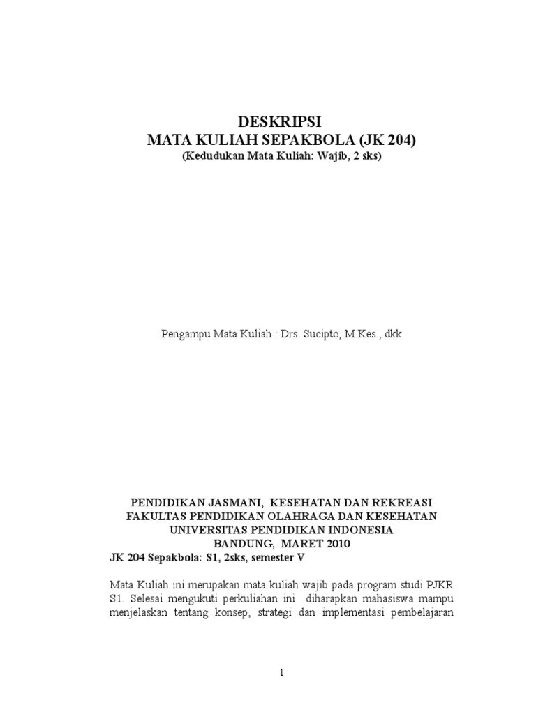 JK 204 Sepakbola: S1, 2sks, semester V