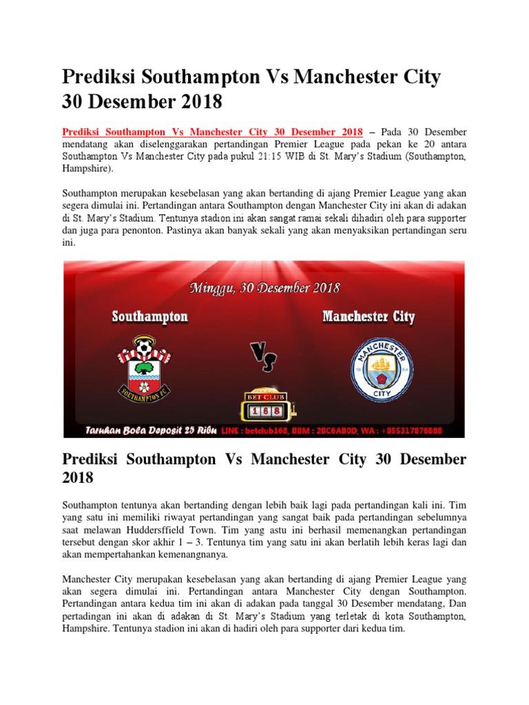 Prediksi Southampton Vs Manchester City 30 Desember 2018 – Pada 30 Desember